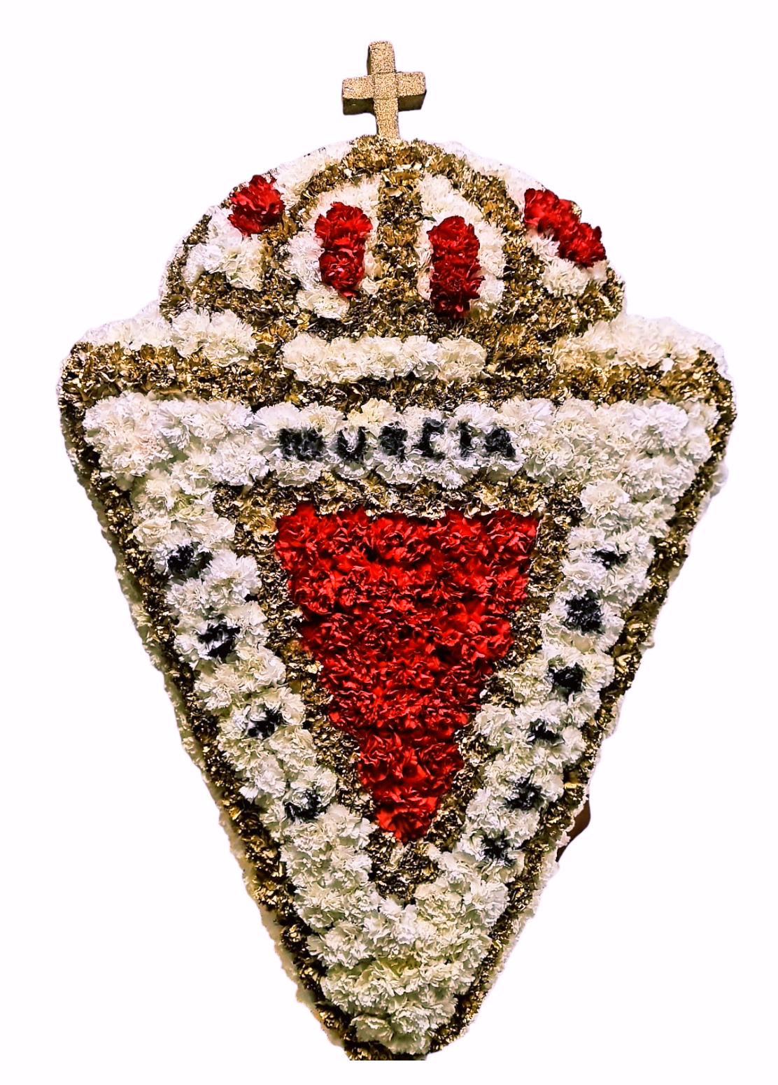 Homenaje al ausente en forma de escudo de su equipo. Una composición floral con la que mostramos nuestro respeto, cariño y amistad hacia nuestro ser querido.